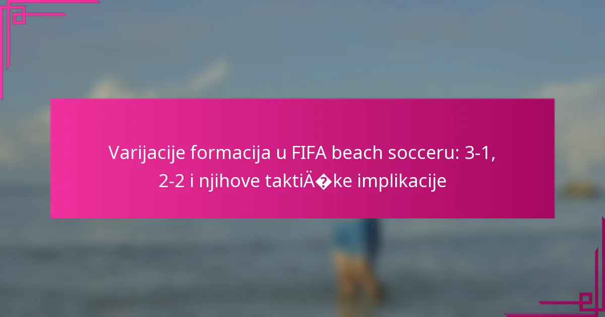 Formacija 3-1 u FIFA beach socceru sastoji se od tri braniča i jednog napadača, stvarajući uravnotežen pristup kako napadu tako i obrani. Ova postava omogućava momčadima da održavaju čvrstu obrambenu pokrivenost dok pružaju prilike za kontranapade i napadačke akcije.