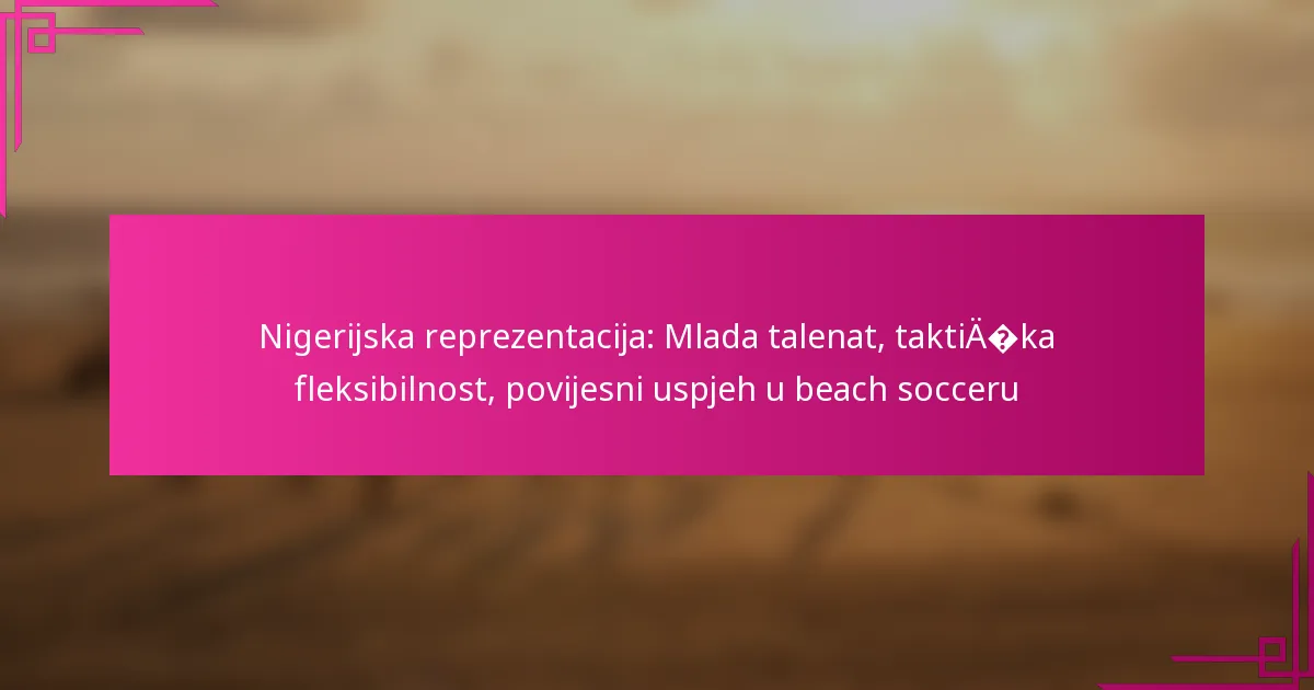 Nigerijska reprezentacija u beach socceru ističe se svojom taktičkom fleksibilnošću, posvećenošću razvoju mladih i impresivnim povijesnim uspjesima. Njegujući mlade talente, tim gradi čvrstu osnovu za budući uspjeh, koristeći prilagodljive strategije koje poboljšavaju njihovu igru. Ova kombinacija odražava kulturne vrijednosti Nigerije i doprinosi njihovim postignućima na međunarodnoj sceni.