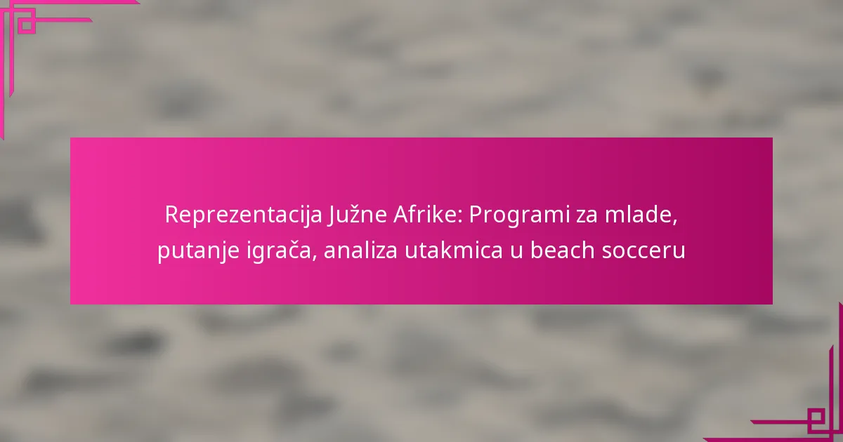 Programi nogometa na plaži u Južnoj Africi se razvijaju, ali se i dalje suočavaju s izazovima u usklađivanju s međunarodnim standardima. Ključna područja usporedbe uključuju kvalifikacije trenera, putove razvoja igrača i natjecateljsku izloženost.